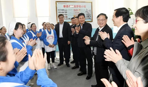 4月6日,中華全國總工會(huì)書記處書記、黨組成員鄒震一行來咸看望慰問趙夢桃小組全體成員。省總工會(huì)黨組書記、主席郭大為,黨組副書記、常務(wù)副主席王軍,黨組成員、副主席趙霞,市委副書記賈珉亮,市人大常委會(huì)副主任、市總工會(huì)黨組書記、主席田一泓,市總工會(huì)黨組副書記、常務(wù)副主席張靜一同看望慰問。