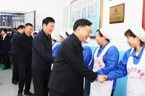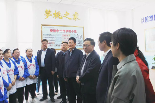 鄒震一行現(xiàn)場察看了趙夢桃小組生產(chǎn)情況,參觀了夢桃展廳,了解企業(yè)生產(chǎn)經(jīng)營情況并向企業(yè)發(fā)放慰問金。