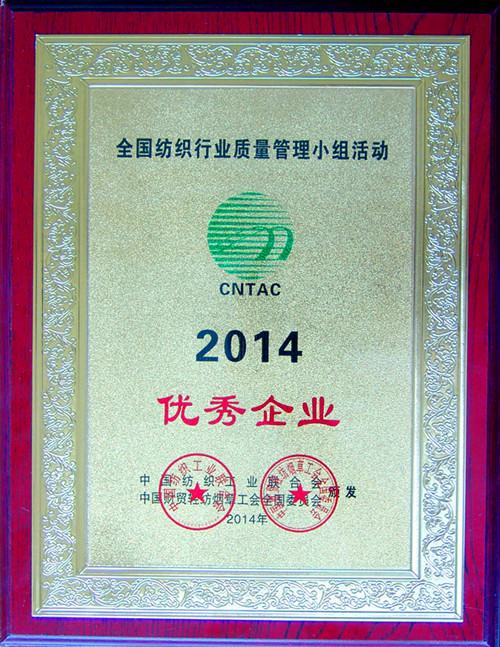 咸陽(yáng)紡織集團(tuán)下屬企業(yè)陜棉八廠榮獲“2014年度全國(guó)紡織行業(yè)質(zhì)量管理小組活動(dòng)優(yōu)秀企業(yè)”榮譽(yù)稱號(hào)